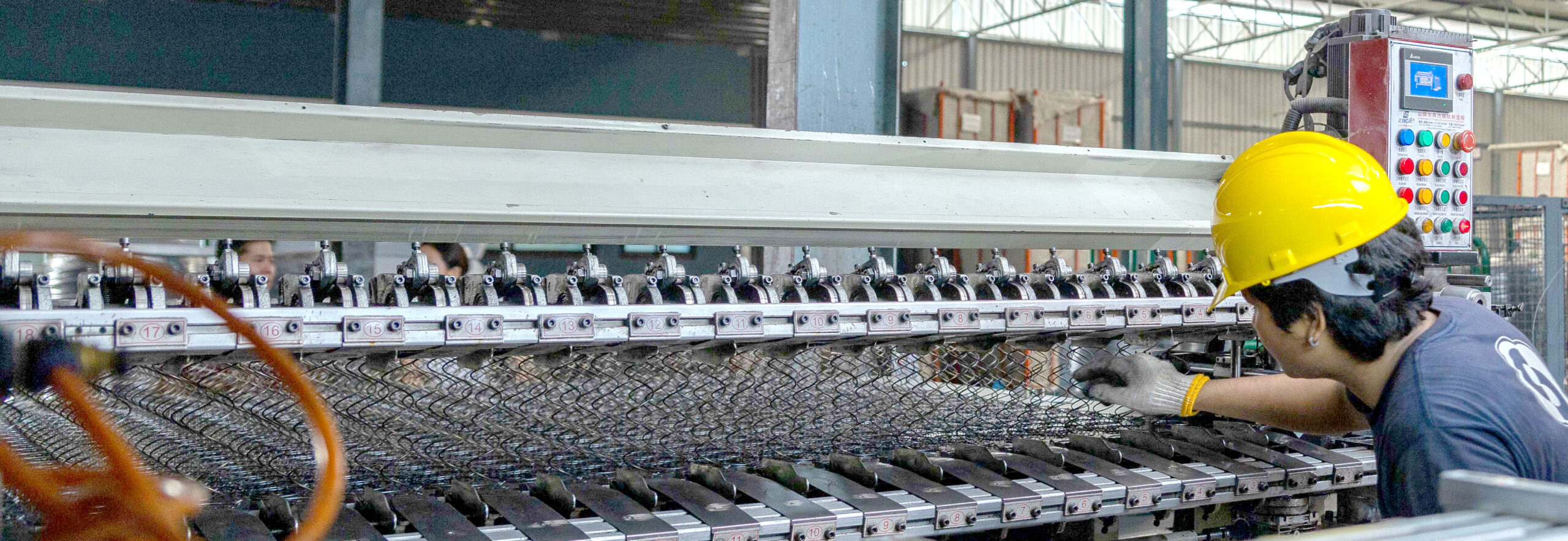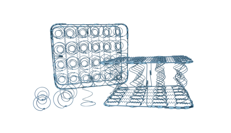 Our factory is capable of producing a variety of Bonnell spring frames with different wire thicknesses and row configurations, ensuring the perfect structure for mattresses. The semi-automatic assembly machines arrange the coil springs in rows and secure them with helically laced wire, according to the required width and length. The frame is then reinforced with border wire and V-shaped shock-absorbing springs that the factory developed itself, enhancing structural integrity and edge support.